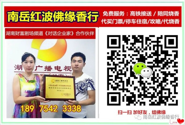 我在湖南省衡阳市南岳区南岳大庙旁边的金沙路万寿广场110号楼【南岳红波佛缘香行】,我们经营烧香拜佛的环保香品、工艺品、宗教用品、民宿,来南岳衡山吃住行玩都可以找我哦,高铁站、车站免费接送,免费停车,免费陪同进庙烧香讲解,免费帮买票等等,还为没有空来的顾客朋友们代烧香等等。红波,189 7542 3338。