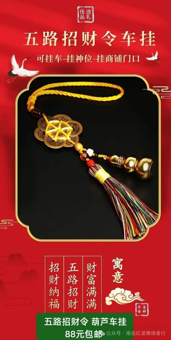 4、五路财神令车挂(含六帝钱),88元每个包邮