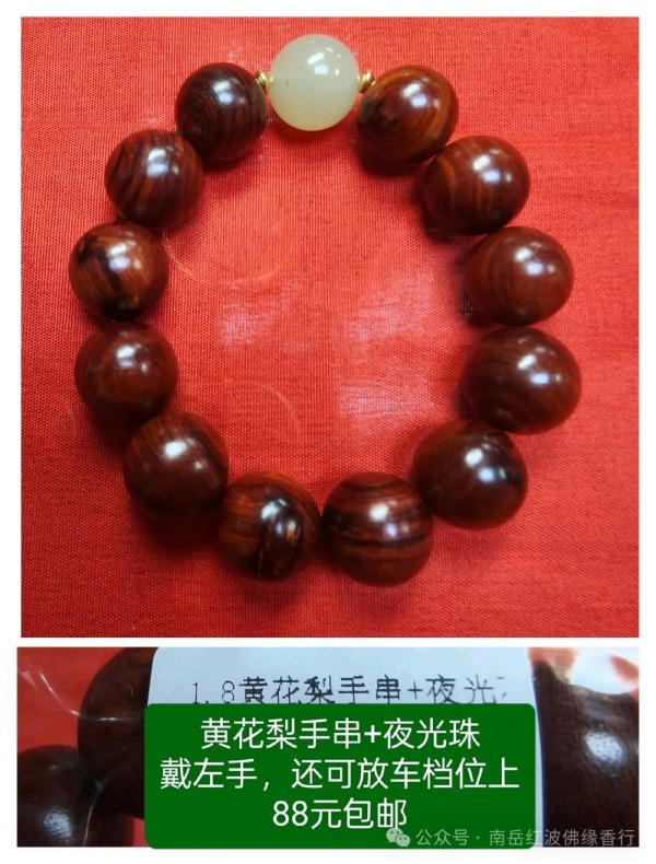 (3)开光黄花梨手串+夜光珠,戴左手,还可放车档位上,88元包邮